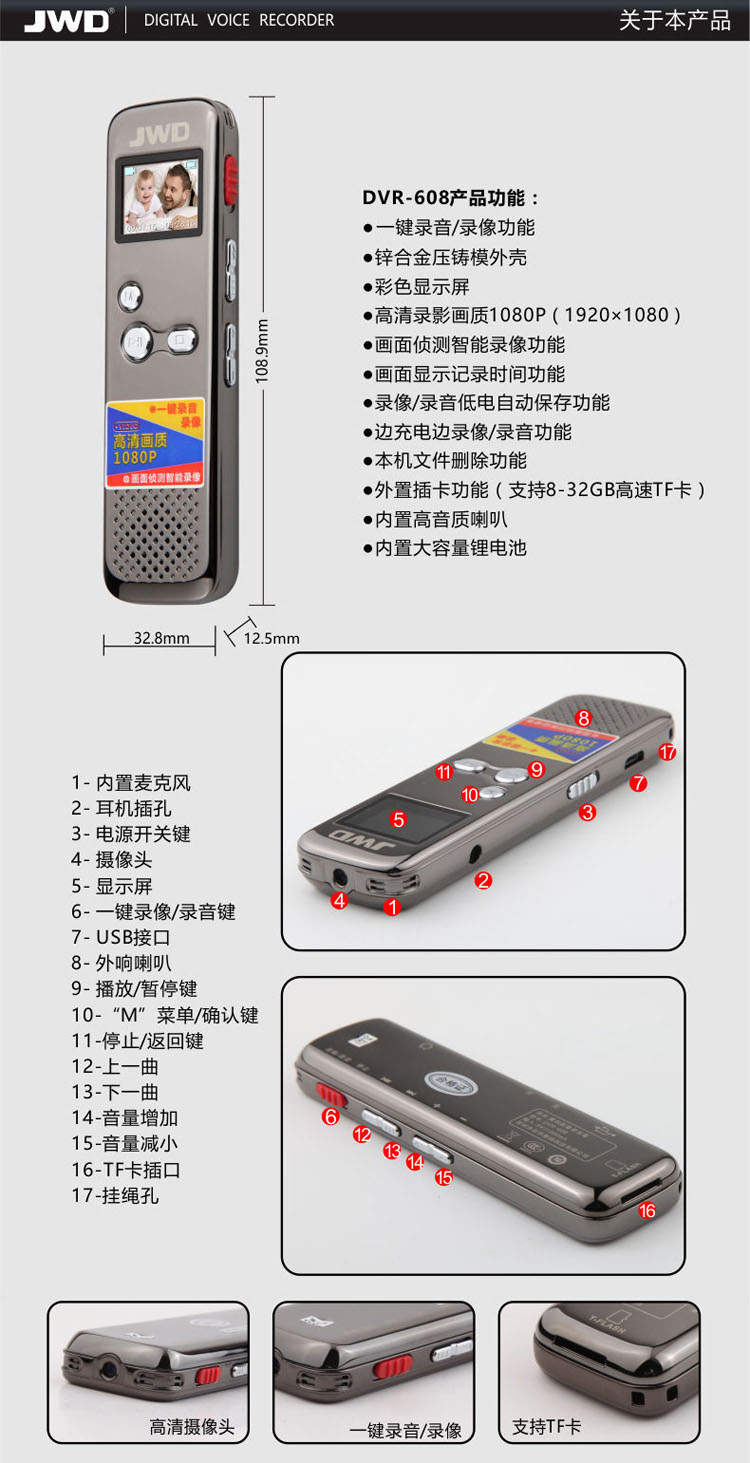 執(zhí)法取證 高清一鍵錄音/錄像 影像數(shù)碼錄音筆