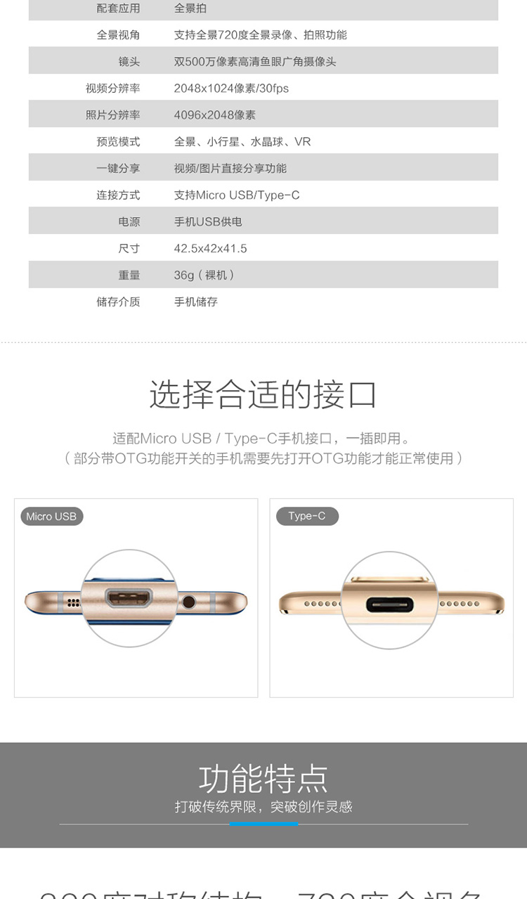 功能:360全景,延時攝影