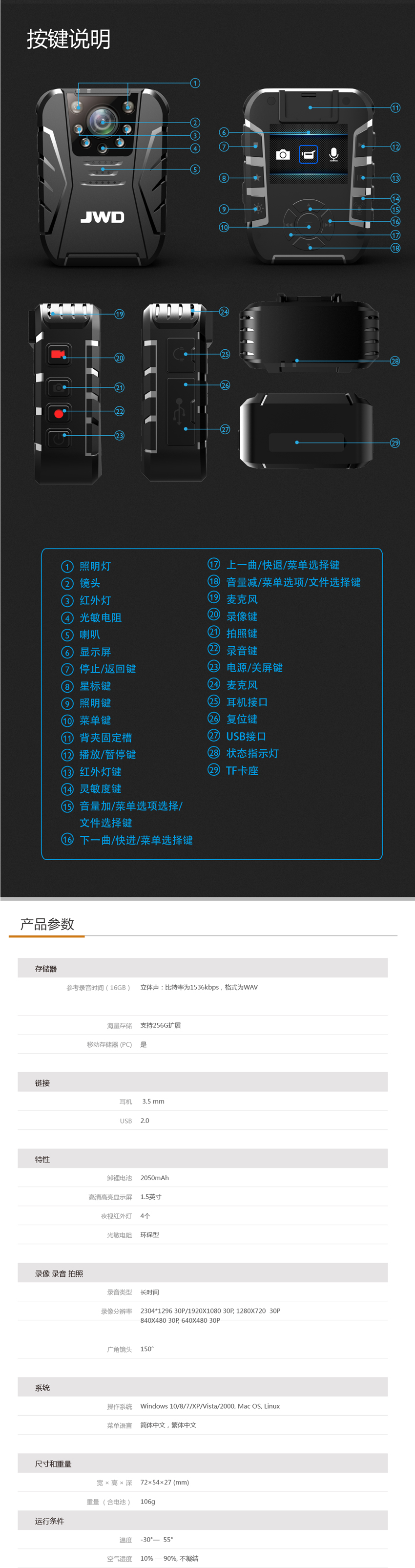 可靠的音視頻記錄儀,小巧便攜的機身,舒適輕巧的佩戴,同樣表現不凡