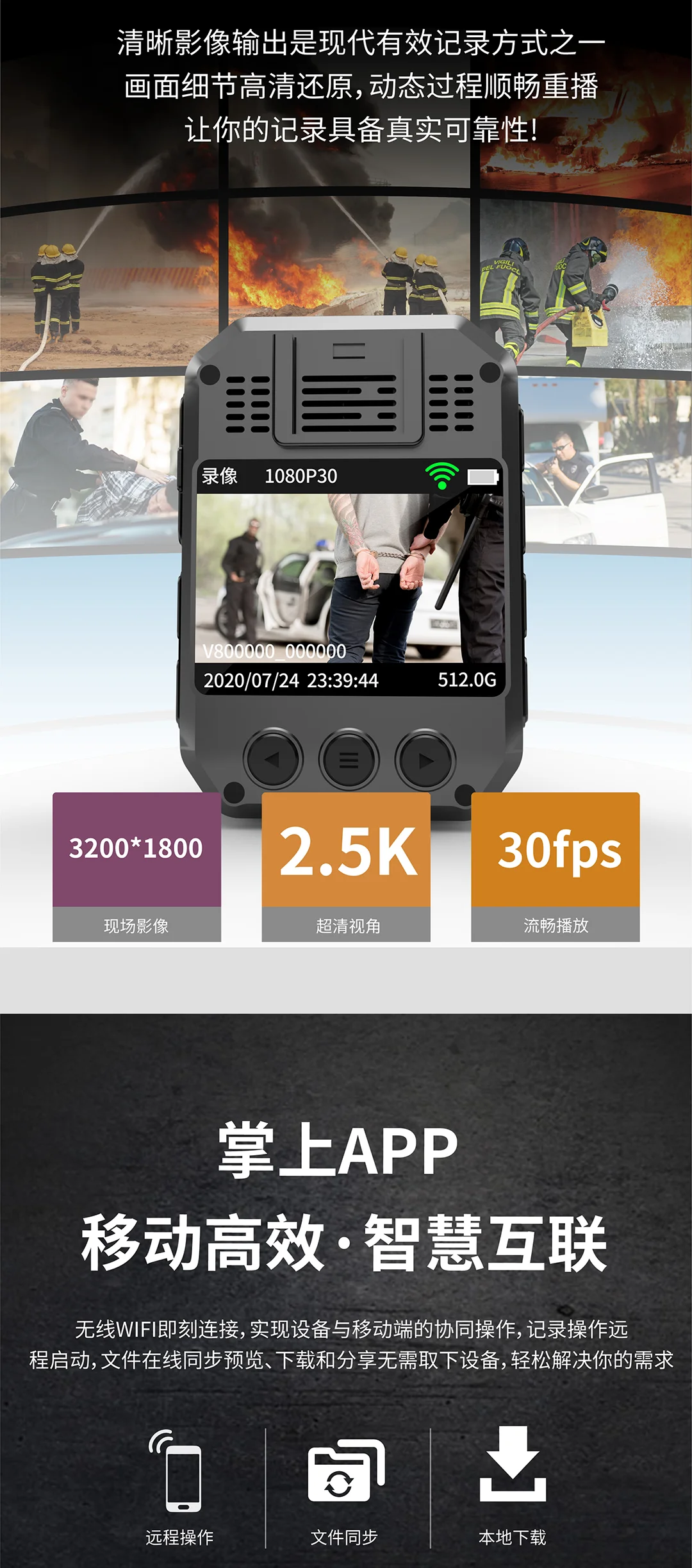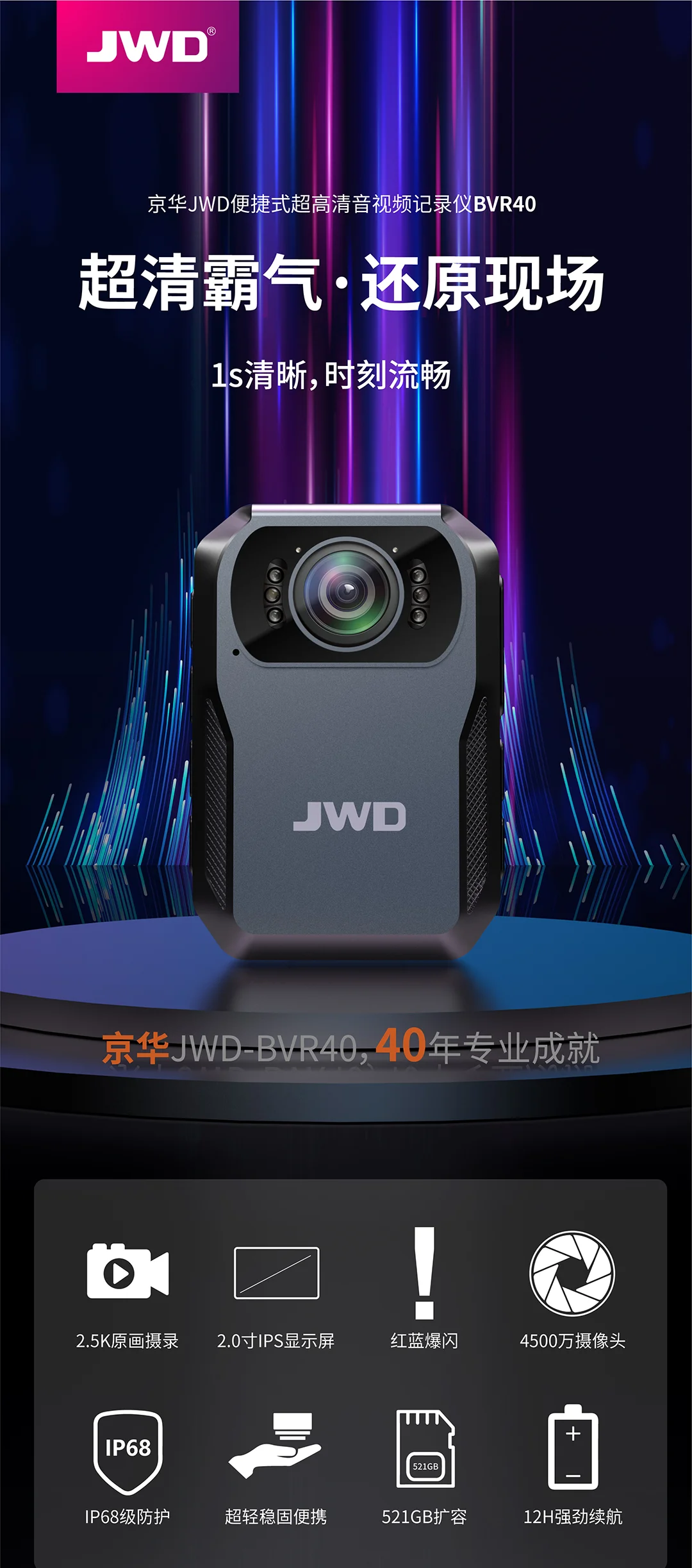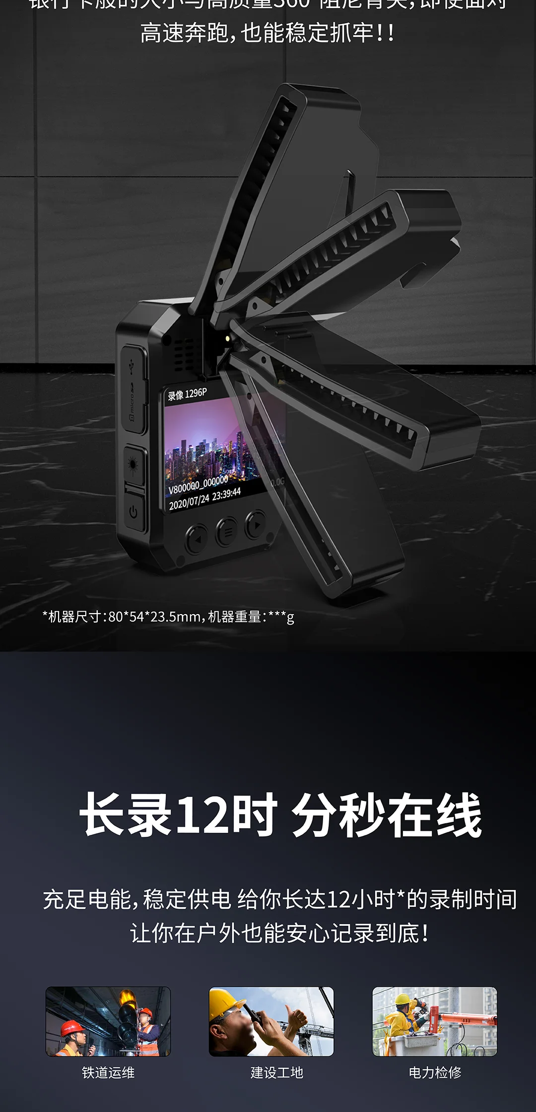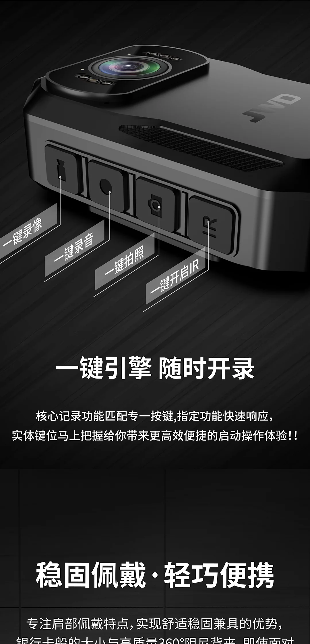紅藍爆閃,2.5K原畫攝錄,IPX8級防護,一鍵錄像,輕巧便攜