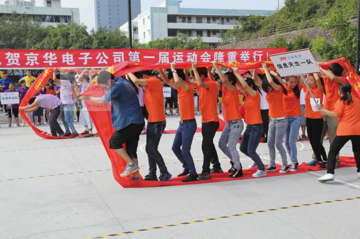 參加此次運動會的代表隊共有18個。他們分別是:京華數碼隊、總部物業隊、京裕一隊、京裕二隊,龍崗京華隊、京佳物業隊,信息一隊、信息二隊、德維爾隊、信息土豪隊、信息好運隊、信息奔跑隊、信息聯合軍團隊、信息天生一隊、信息E1隊、信息E2隊、信息E3隊,信息加合隊。整個運動會設了十二個比賽項目,分別是:風火輪、跳繩、呼拉圈、接力運球、男子乒乓球,女子乒乓球,男子羽毛球,女子羽毛球,拖拉機,同心協力,托運大氣球,拔河等。