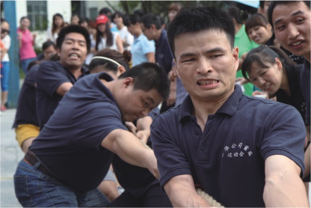10月26日,最后一個比賽日。進行了拖拉機、同心協力、托運大氣球、拔河等4個項目的決賽。最為緊張刺激的是下午的拔河比賽。根據比賽規則每隊5男5女共10個人,采取3局兩勝的淘汰賽制。最后京佳物業隊與信息好運隊狹路相逢。兩隊展開了你爭我奪,雙方運動員都鉚足了勁,相互實力勢均力敵。在幾百名拉拉隊員震耳欲聾的加油聲中,雙方隊員互不相讓,寸土必爭。出現了長時間僵持不下的狀況。經過三局激烈的爭奪,最后京佳物業憑借牛高馬大、耐力超強的保安人員為主要陣容,一舉拿下了冠軍寶座。