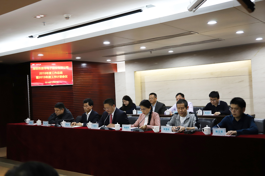 2018年12月21日下午,京華公司在華強北本部三樓大會議室召開了“2018年度工作總結暨2019年工作計劃會議”。會議由公司黨委書記陸毅萍同志主持,公司經理班子成員以及全體中層干部共計71人參加了本次會議。會議中,王國慶總經理系統回顧了2018年度公司經營和產業發展情況,部署了2019年工作計劃,形成和發表了題為《牢記傳統 奮勇直前 在實施第三次產業升級戰略中再創公司新輝煌》工作報告。