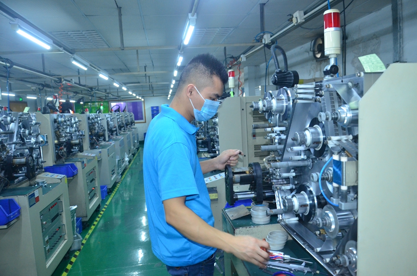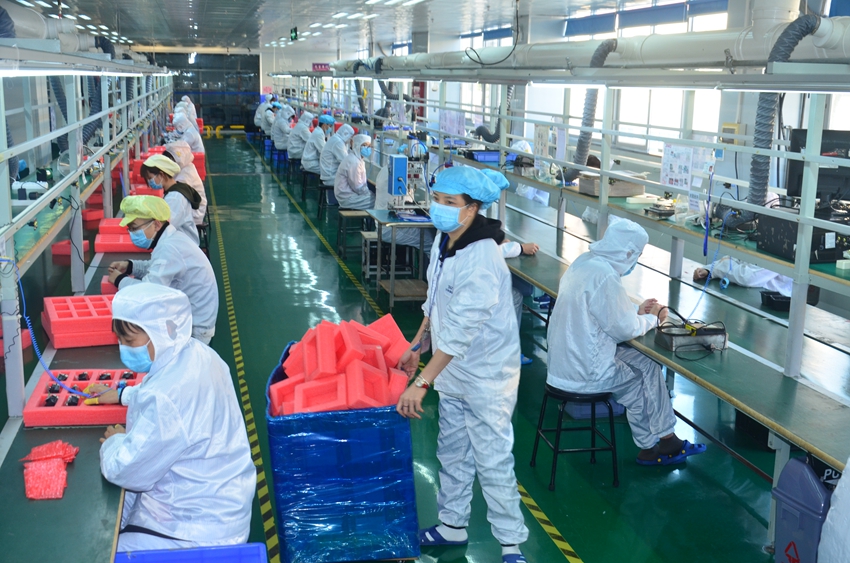 開工以來流水線人手不夠,信息公司副總經理吳虎越親自上陣
