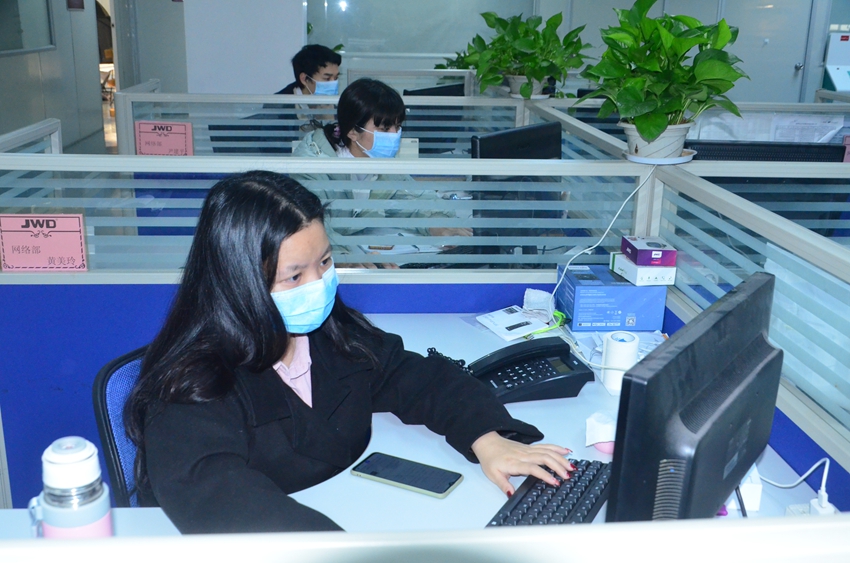 為了迎接2月17日正式復工復產,京華信息公司總經理潘光宇協同生產、采購、銷售、開發等部門根據龍崗區對超300人工廠嚴苛的復工要求,擬訂整套疫情防控應急預案,確保復工復產后的各項工作萬無一失。京華信息公司主管生產的副總經理鄺麗英提前3天來到工廠,與工作人員一起摸清員工返程情況,擬訂員工進入車間測體溫的程序。為了減少員工排隊填寫登記個人信息帶來的長時間等待,他們在開工之前就提前采集了每個員工的個人信息,給每個員工編了號碼寫在工牌上,將每個員工個人信息打印成冊。員工上班只需報個人號碼工作人員就能馬上找到其個人的信息。