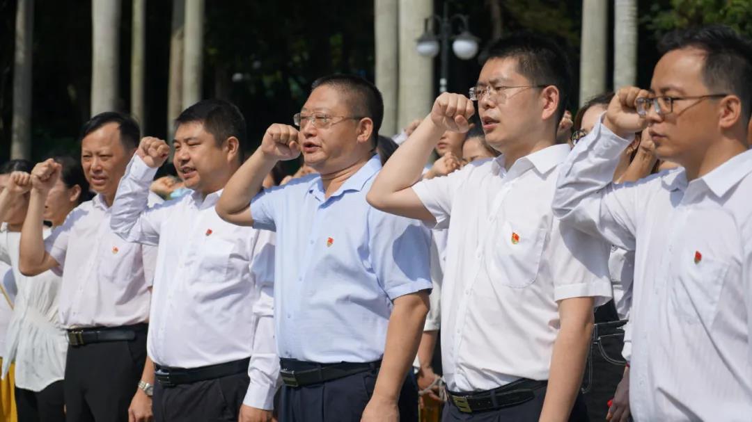 “我志愿加入中國共產黨,擁護黨的綱領……”在黨委組織委員歐文剛同志的領讀下,全體黨員面對黨旗莊嚴宣誓,重溫入黨誓詞。
