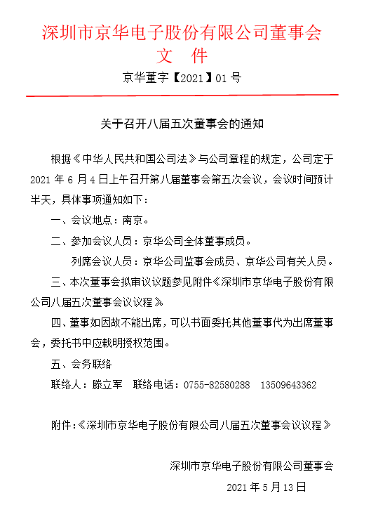 深圳市京華電子股份有限公司關于召開2019年度股東大會的通知