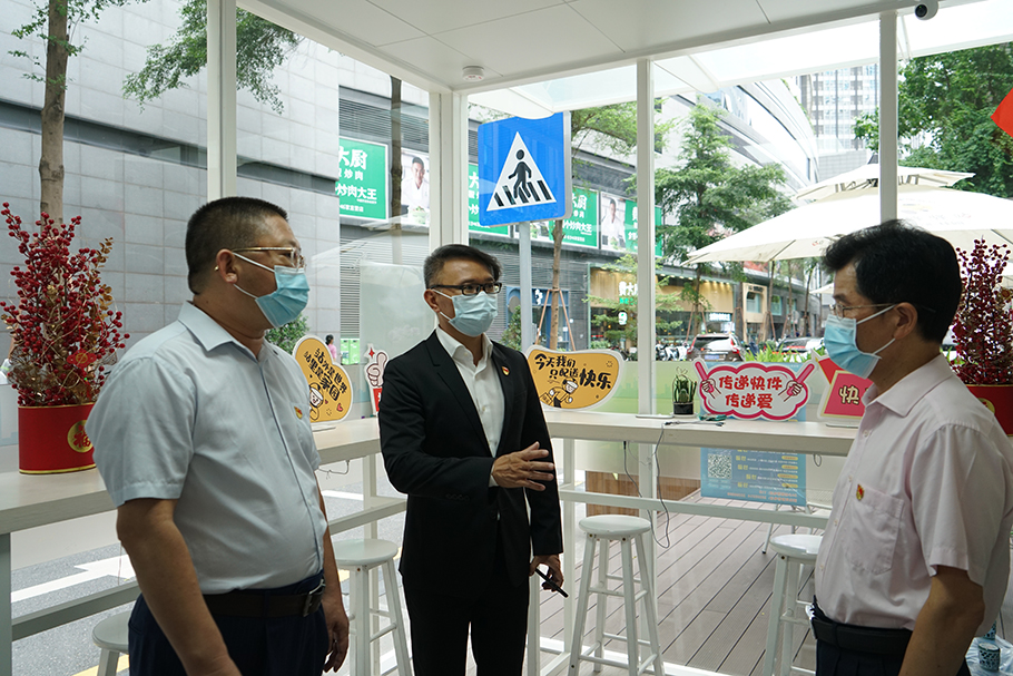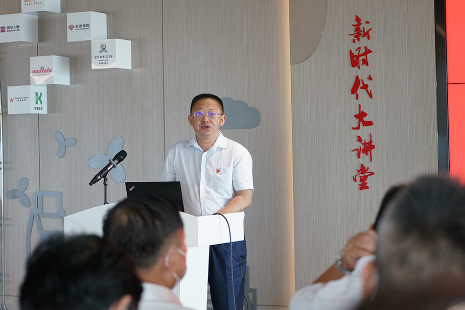 隨后,雙方在京基100大廈A座44樓黨群服務(wù)中心舉行黨建共建交流活動。陳小斌書記介紹了京基100聯(lián)合黨委的概況,并詳細(xì)分享了樓宇黨建的工作經(jīng)驗。他表示,京基100聯(lián)合黨委以黨群服務(wù)中心為載體,結(jié)合樓宇黨組織的特點,通過“樓宇+物管”、“黨建+經(jīng)濟(jì)”等一系列創(chuàng)新舉措,不斷破解樓宇黨建工作難題,充分利用樓宇資源,將黨建工作融入樓宇管理和企業(yè)發(fā)展,搭建共享共贏共創(chuàng)平臺。