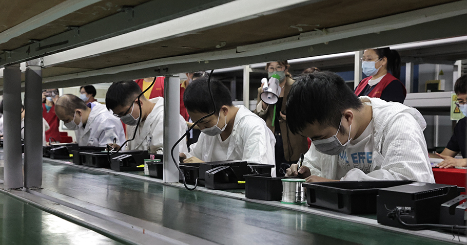 “螺絲不能歪斜”“焊點的外觀要光滑、圓潤、清潔、均勻”“氣泡直徑不能超過3mm”…… 驟降的氣溫抵擋不住選手們的參賽熱情,在京華電子智能產業科技園的生產車間賽場上,裁判員們正在認真地著每一個細節。58名技能參賽選手就數碼貼膜技術、焊接技術和智能裝配技術3個項目展開激烈角逐。